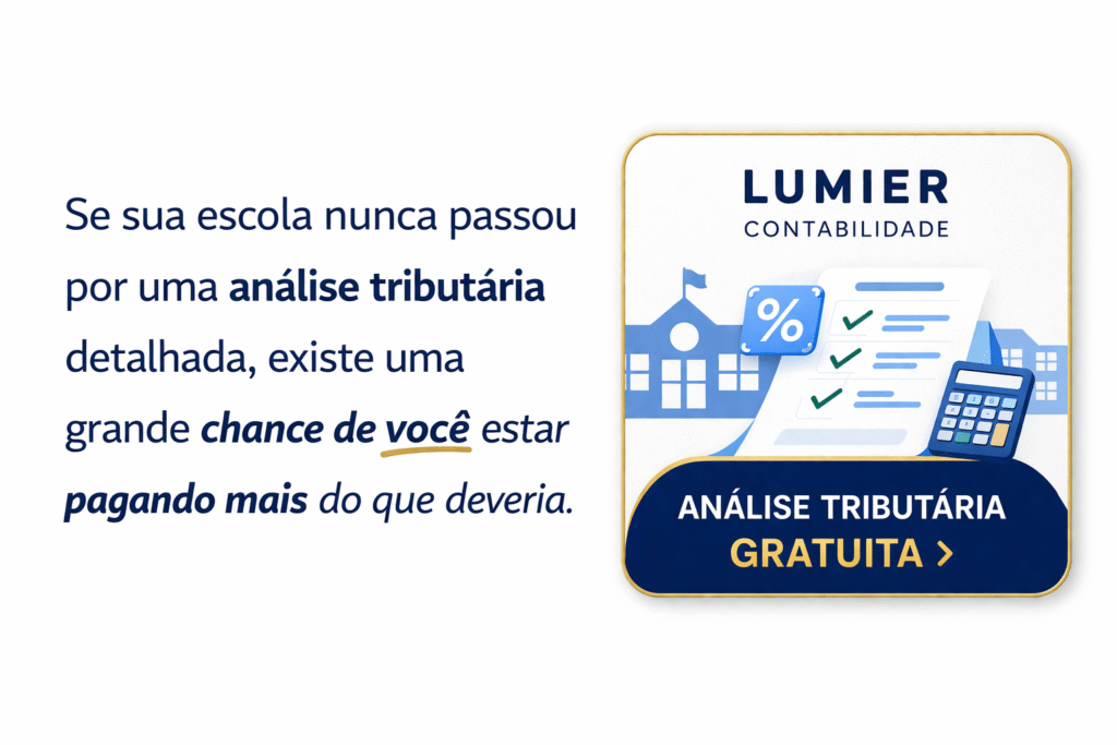 Aqui na Lumier Contabilidade, ajudamos escolas e instituições de ensino a reduzir impostos de forma legal e estratégica.